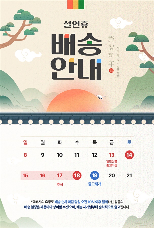 (공휴일, 기상악화 등 불가피한 상황에 따라 추가 지연될 수 있습니다.)