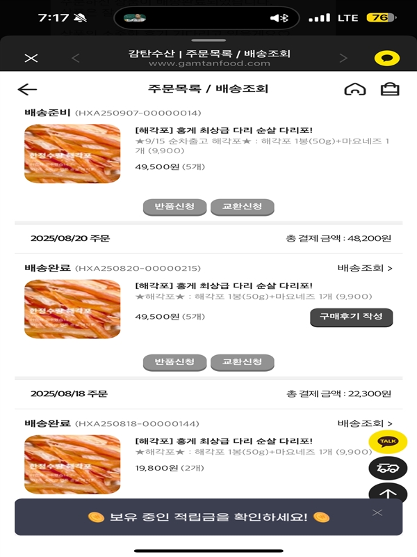명품 순살 해각포