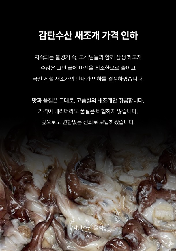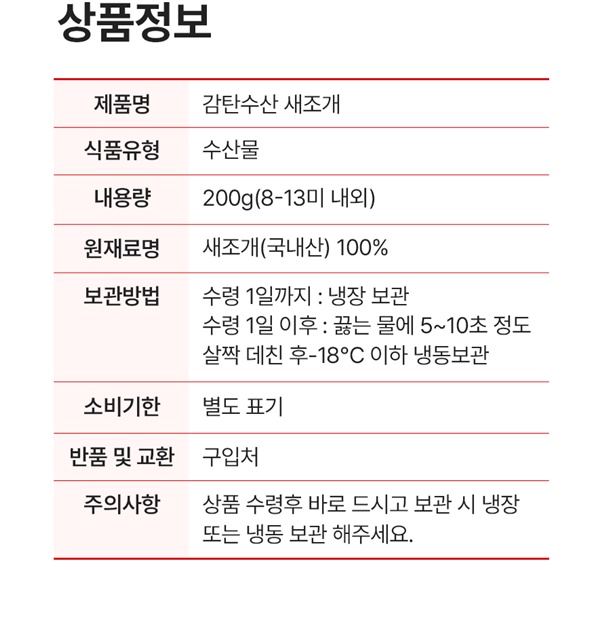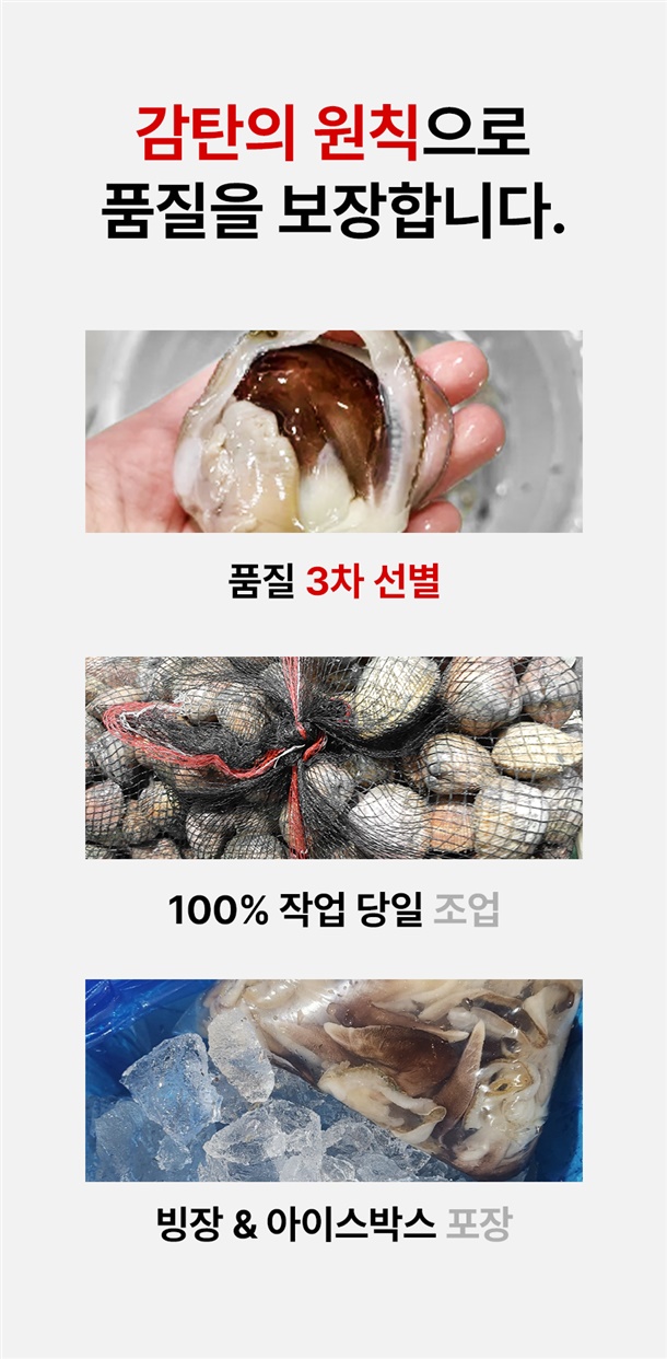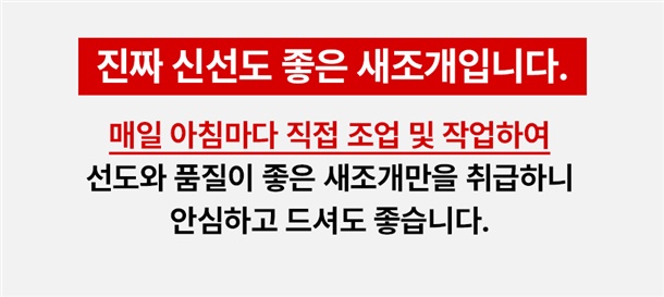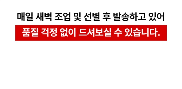 · 배송은 입금 확인 된 날짜로부터 1~3일 소요되며, 당일 조업 상품의 경우 날씨, 조업량 등의 영향으로 발송이 지연 될 수 있습니다.
