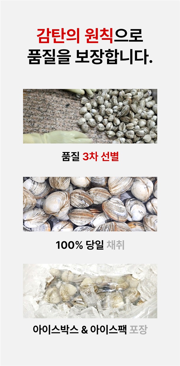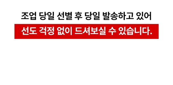 · 배송은 입금 확인 된 날짜로부터 1~3일 소요되며, 당일 조업 상품의 경우 날씨, 조업량 등의 영향으로 발송이 지연 될 수 있습니다.