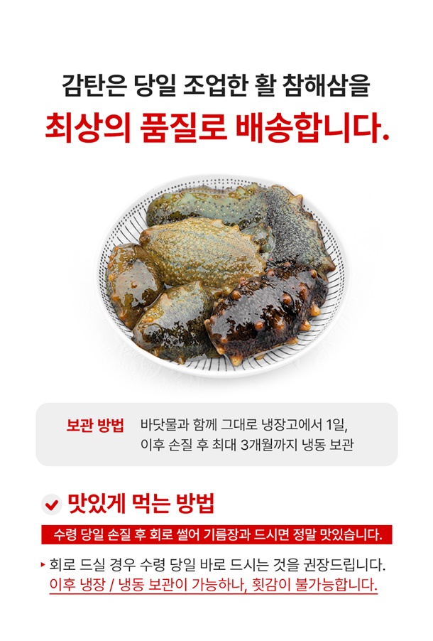 · 지정일 배송을 요청 하시는 경우 최대한 반영 해드리고 있으나, 시간 지정은 불가 하며 생물은 조업 불가 시 지정일 배송이 어려울 수 있습니다.