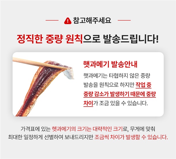 · 배송은 입금 확인 된 날짜로부터 1~3일 소요되며, 당일 조업 상품의 경우 날씨, 조업량 등의 영향으로 발송이 지연 될 수 있습니다.