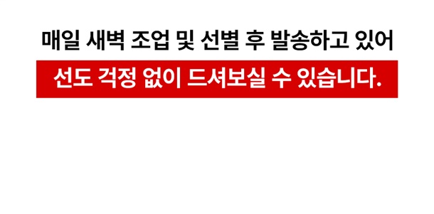 · 배송은 입금 확인 된 날짜로부터 1~3일 소요되며, 당일 조업 상품의 경우 날씨, 조업량 등의 영향으로 발송이 지연 될 수 있습니다.